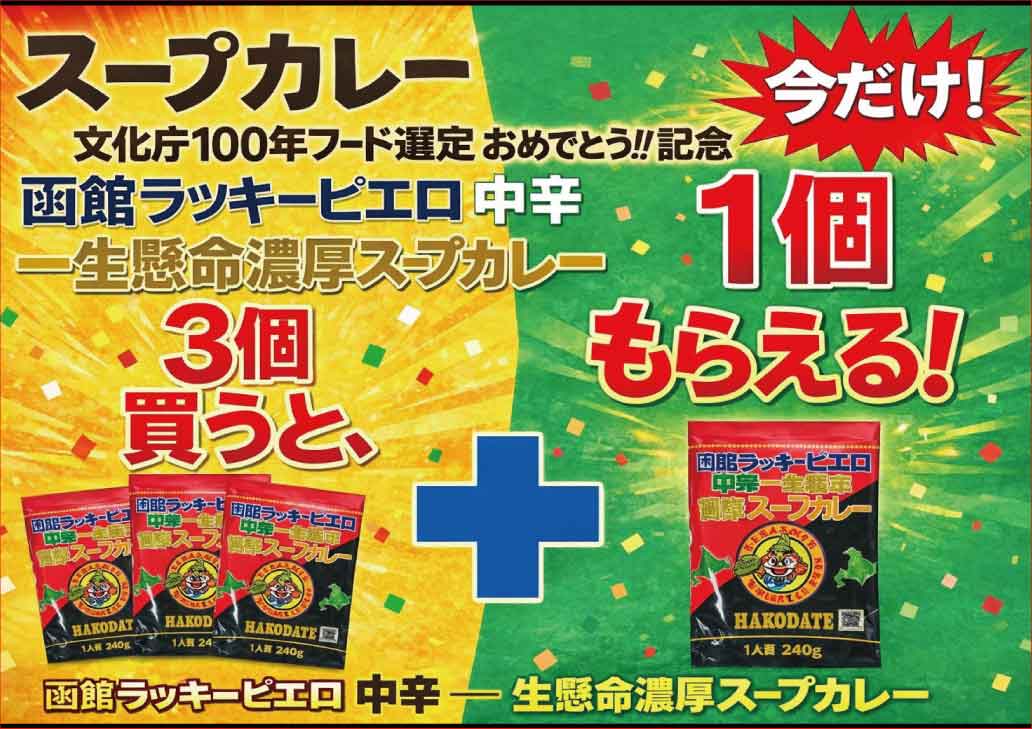 今だけ!スープカレー 3個買うと一個もらえる!