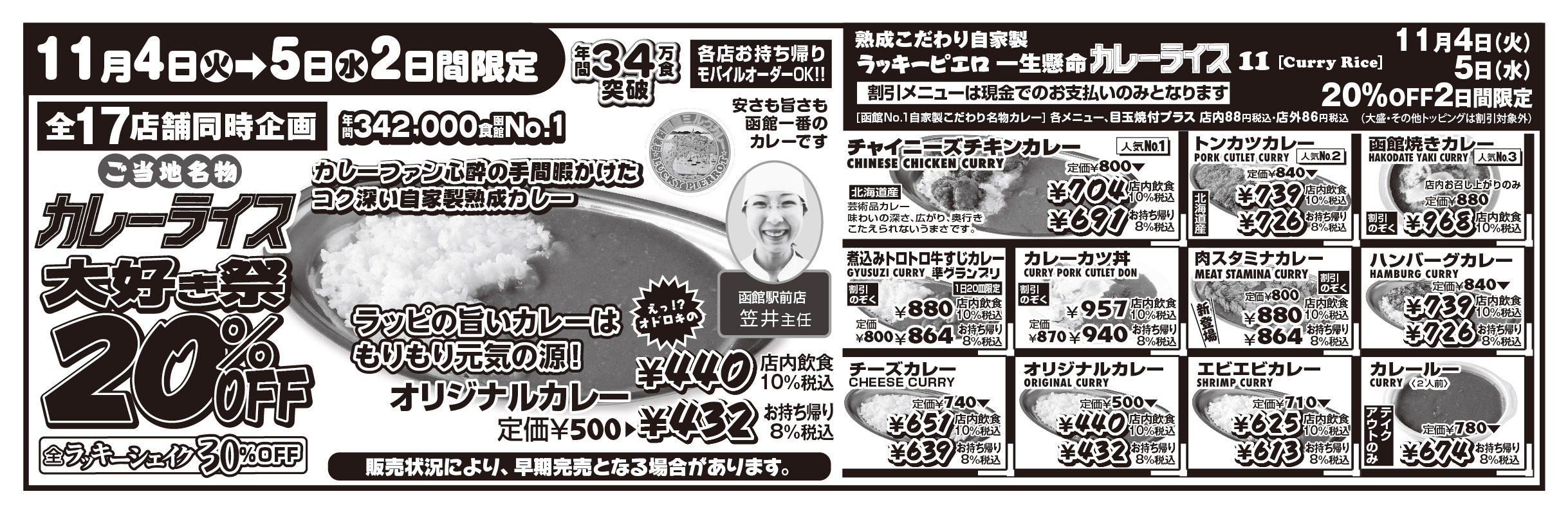 | 毎月1日 | カレールー(2人前) 30%OFF | 全店 |