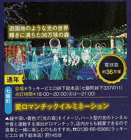雑誌じゃらん12月号にラッキーピエロの愛ロマンチックイルミネーションが紹介されました。